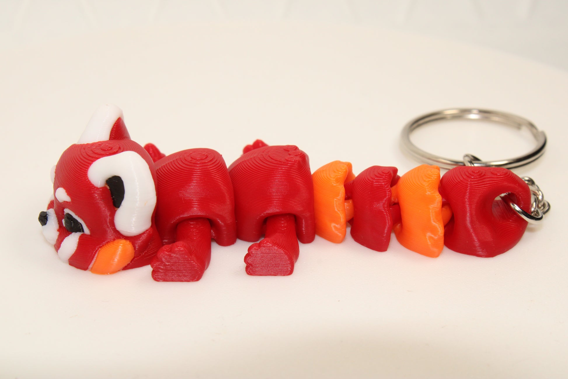 Bring a little bit of playful charm to your day with our 3D-printed articulated red panda keychain! This enchanting accessory is more than just a charm; its segmented body is fully articulated, allowing it to wiggle and bend with a satisfying feel. It's the perfect fidget toy and a delightful companion for your keys, bag, or backpack.